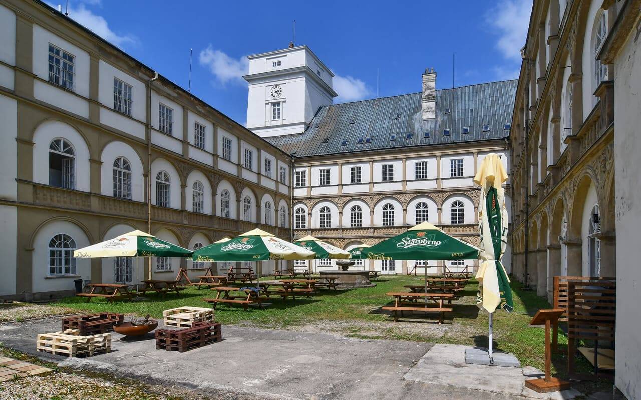 V hlavní budově zámku lze využít historický krbový sál pro 50 osob. Hlavní budova zámku nabízí rovněž praktické zázemí pro catering. Nádvoří přímo vybízí pro venkovní aktivity až pro 200 osob. Zajistíme Vám podium, osvětlení, ozvučení, veškerý inventář (stoly a židle) a samozřejmě catering od kuchařů z EFI SPA Hotelu**** Superior & Pivovar. V Předzámčí zámku můžete využít pronájem zrekonstruovaného prostoru historické Konírny, která Vás okouzlí svojí atmosférou. Konírna je vhodným prostorem pro až 80 osob vč. technického zázemí, baru a toalet Sál konírna je ideální volbou pro firemní oslavy, party, ale i kongresové akce. Ubytování v Předzámčí nabízí kapacitu až 40 osob, a to v pokojích typu Classic, Deluxe a Diamond. Nově je k dispozici luxusní ubytování v 11 dvou až čtyřlůžkových apartmánech v Podzámčí (tedy pro 34 osob), kde hosté navíc najdou wellness se saunou a odpočívárnou, společenskou místnost s kuchyní, barem a krbem, ale i venkovní bazén s terasami vč. lehátek. Bazén je v zimních měsících vyhřívaný.