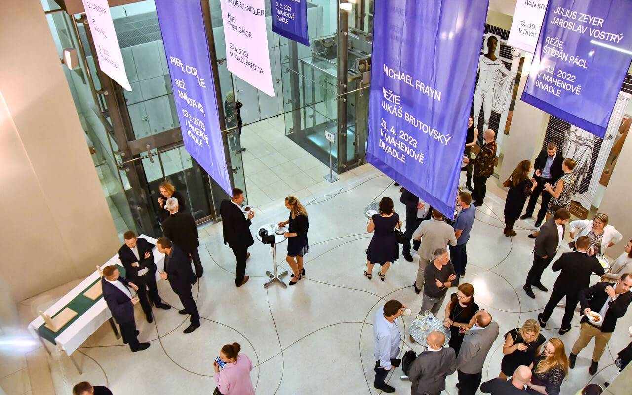- divadelní sál, prostor foyer, terasu pro až 587 osob v rámci Mahenova divadla, Malinovského nám., Brno